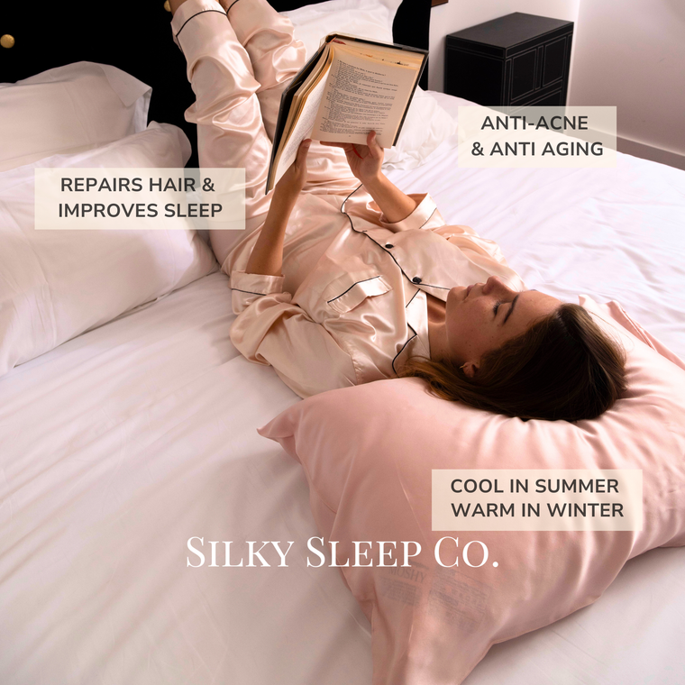 Why waste the benefits of your nighttime care (serums, creams, etc.) with a pillowcase that absorbs most of these precious nutrients? Choose the 100% mulberry silk pillowcase from SilkySleep. Your skin will retain its hydration, forming a protective layer against dryness and acne, and getting the most out of your beauty routine.